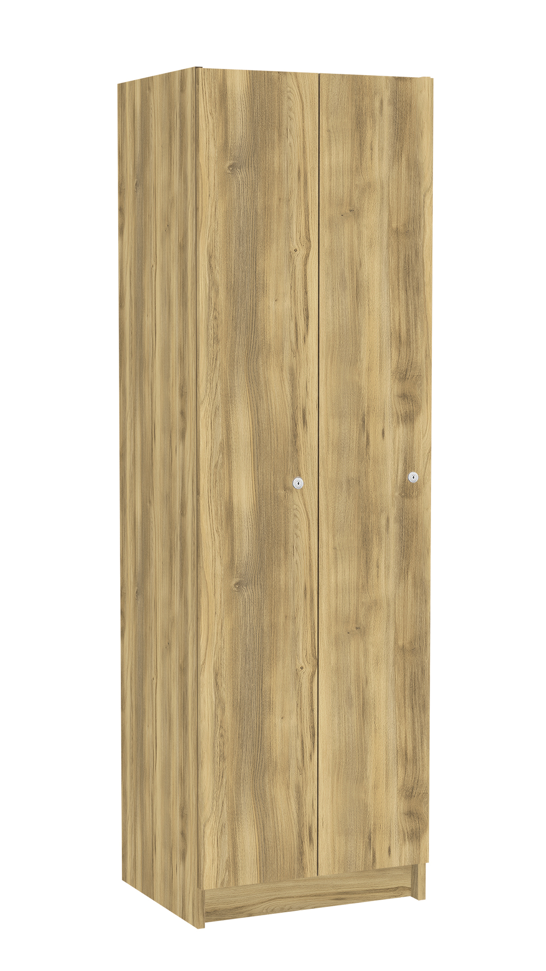 2-dveřové šatní skříňky v nadčasovém dekoru jsou vyráběné kompletně z laminované dřevotřísky o síle 18 mm. Každý oddíl je vybavený dvěma samostatnými policemi a chromovou šatní tyčí. Jednoduchý a elegantní design doplňují cylindrické zámky se dvěma klíči. Veškeré hrany jsou ošetřeny 2 mm ABS hranou, čímž je zaručena dlouhá životnost šatních skříněk. Tato šatní skříňka se stane vkusnou součástí Vašeho interiéru.
