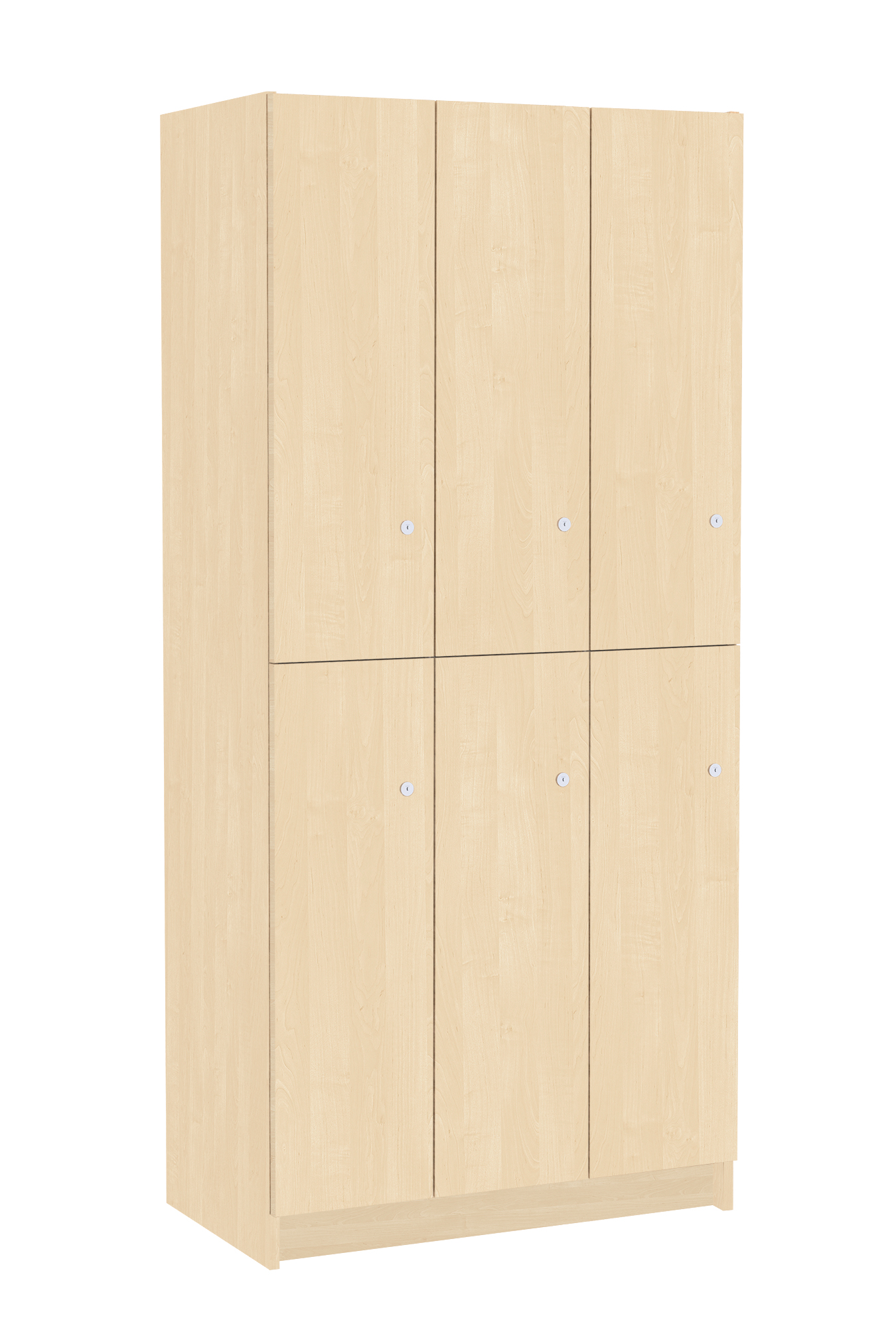 Calolaminované 6-boxové šatní skříňky v nadčasovém dekoru jsou vyráběny kompletně z laminované dřevotřísky o síle 18 mm.
