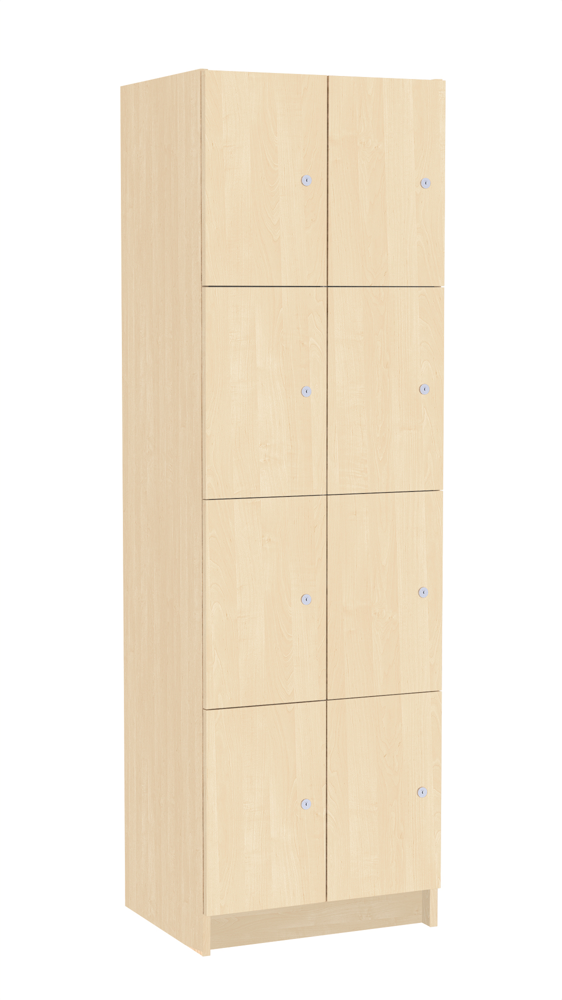 8-boxové šatní skříňky v nadčasovém dekoru jsou vyráběné kompletně z laminované dřevotřísky o síle 18 mm. Jednoduchý a elegantní design doplňují cylindrické zámky se dvěma klíči. Veškeré hrany jsou ošetřeny 2 mm ABS hranou, čímž je zaručena dlouhá životnost šatních skříněk. Tato šatní skříňka se stane vkusnou součástí Vašeho interiéru.