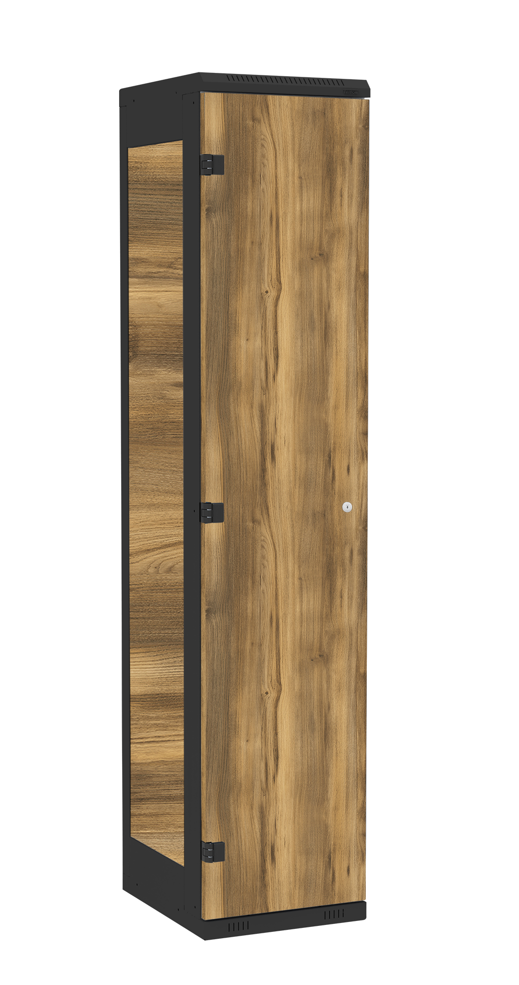 Šatní skříňky jsou vyrobeny z kvalitního ocelového plechu povrchově upraveného práškovou barvou v kombinaci s laminovanou dřevotřískou ve volitelných barevných dekorech. Veškeré hrany jsou opatřeny 2 mm ABS hranou. Skříňky mají předvrtané otvory pro případné doplnění polic.