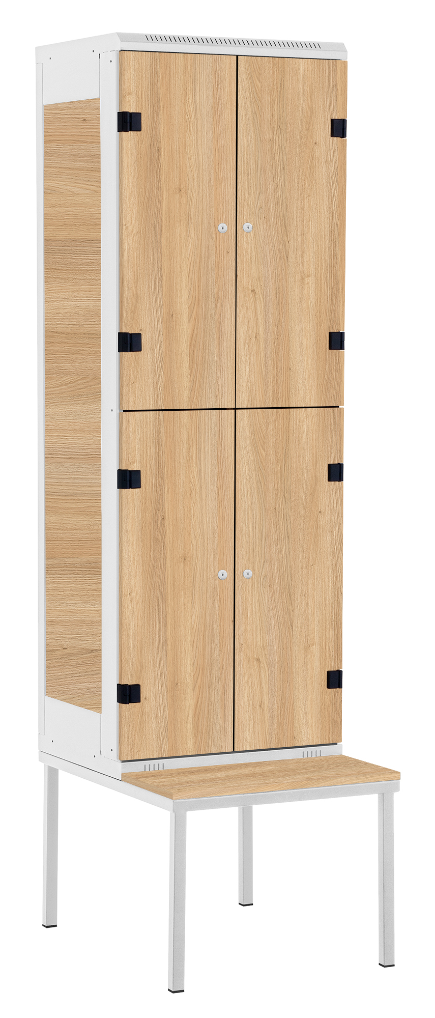 Šatní skříňky v kombinaci ocelového plechu a laminované dřevotřísky nabízejí svým provedením a vysokou kvalitou spolehlivé vybavení v šatnách různých zařízení, jako jsou firmy, školy, sportovní zařízení, nemocnice, fitness centra apod.