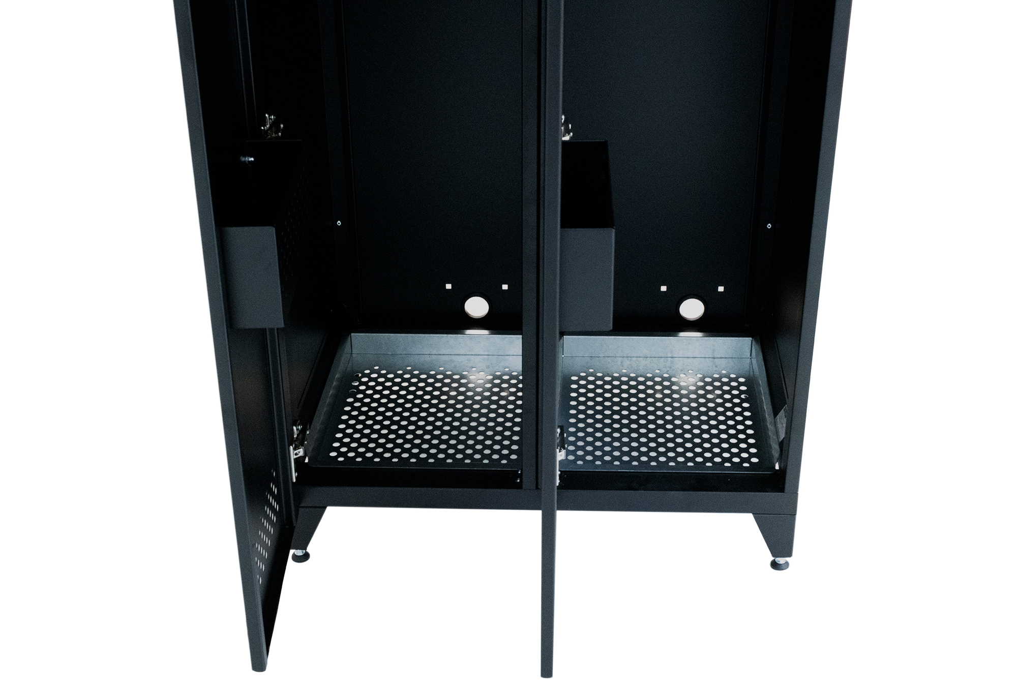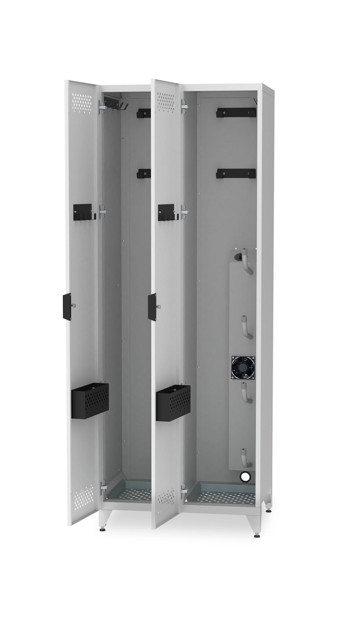 Skříně na lyže a snowboardy, které lze dovybavit příslušenstvím, jsou určené pro vybavení lyžáren hotelů, penzionů a skidepotů v lyžařských areálech. Vyrábíme je z pozinkovaného ocelového plechu lakovaného odolnou práškovou barvou v základní barvě RAL 7035 (světle šedá), RAL 5005 (modrá) a RAL 9005 (černá).